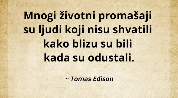 Mnogi životni promašaji su ljudi koji nisu shvatili kako blizu su bili kada su odustali. ~Tomas Edison