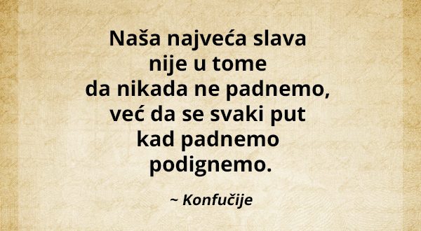 Naša najveća slava nije u tome da nikada ne padnemo, već da se svaki put kad padnemo podignemo. ~Konfučije