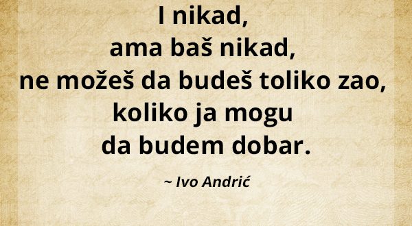 I nikad, ama baš nikad, ne možeš da budeš tako zao, koliko ja mogu da budem dobar. ~Ivo Andrić